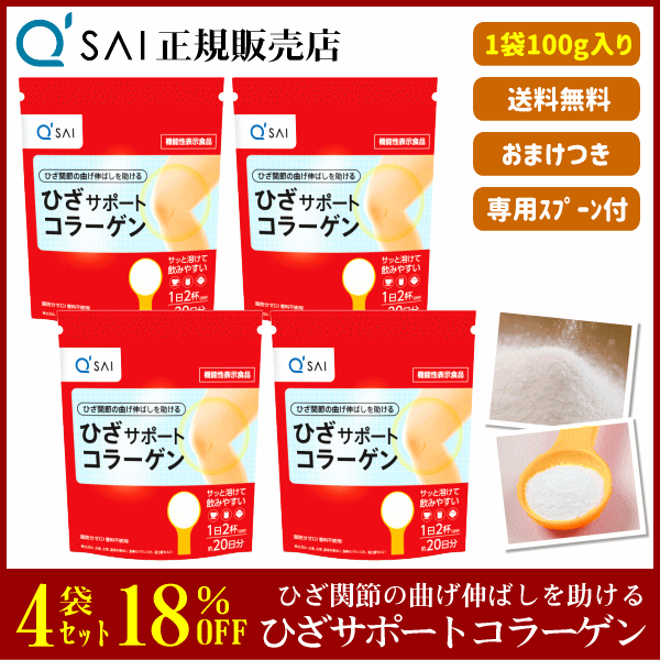 18%割引 キューサイ ひざサポートコラーゲン 100g 4袋まとめ買い +おまけ付 サプリ 粉末 機能性表示食品 膝関節 脂肪分ゼロ ひざコラ 専用スプーン付