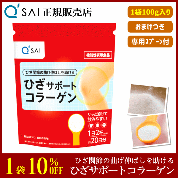 10%割引 キューサイ ひざサポートコラーゲン 100g +おまけ付 サプリ 粉末 機能性表示食品 膝関節 脂肪分ゼロ ひざコラ 専用スプーン付