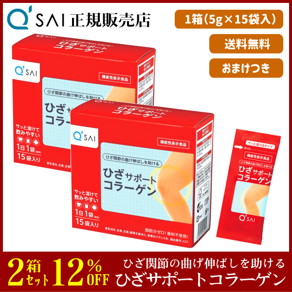 12%割引 キューサイ ひざサポートコラーゲン 5g×15袋 2箱まとめ買い +おまけ付 サプリ 粉末 分包 機能性表示食品 膝関節 脂肪分ゼロ ひざコラ