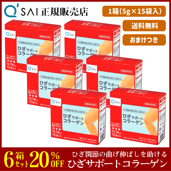 20%割引 キューサイ ひざサポートコラーゲン 5g×15袋 6箱まとめ買い +おまけ付 サプリ 粉末 分包 機能性表示食品 膝関節 脂肪分ゼロ ひざコラ