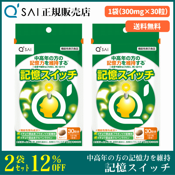 キューサイ 記憶スイッチ 300mg×30粒 2袋まとめ買い サプリ 機能性表示食品 イチョウ葉由来成分配合