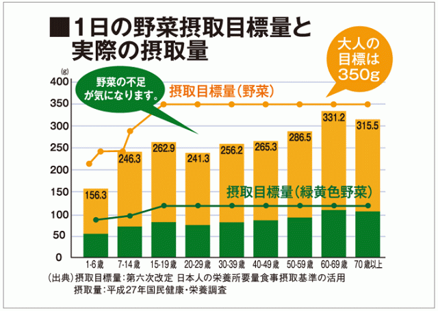 ※1=参照「健康日本21(第2次)」成人以上の1日あたりの野菜摂取目標量