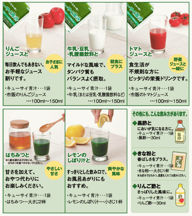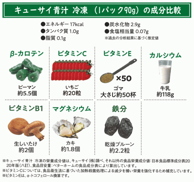 まずは、欠かしたり偏ったりしがちな朝食に「キューサイ青汁(冷凍タイプ)」を1杯加えてみませんか。栄養バランスを整えて、毎日の健康管理をサポートします。