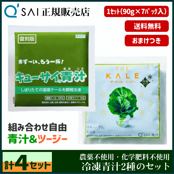 キューサイ青汁冷凍 90g×7パック +ザ・ケール ツージー 冷凍 90g×7パック 計4セット +おまけ付 健康飲料 国産 農薬不使用