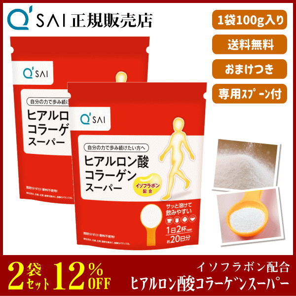 12%割引 キューサイ ヒアルロン酸コラーゲンスーパー 100g 2袋まとめ買い +おまけ付 サプリ 粉末 イソフラボン配合
