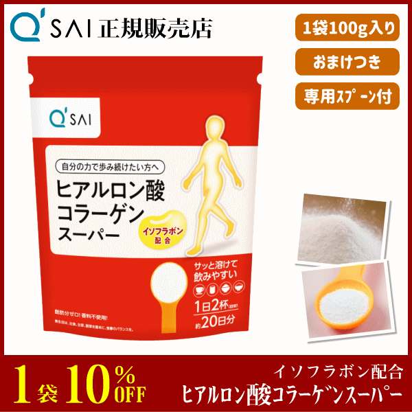 10%割引 キューサイ ヒアルロン酸コラーゲンスーパー 100g +おまけ付 サプリ 粉末 イソフラボン配合