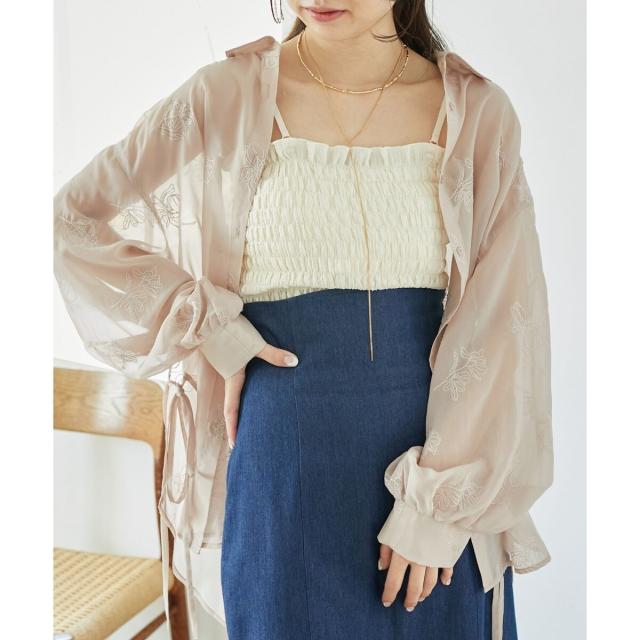 透け感を活かして、キャミやタンクに羽織ってさらっと着ていただくとトレンド感アップ◎
