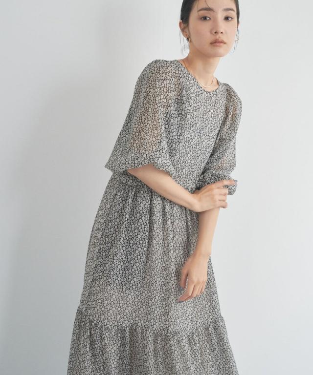 フェミニンな印象の小花柄プリントは