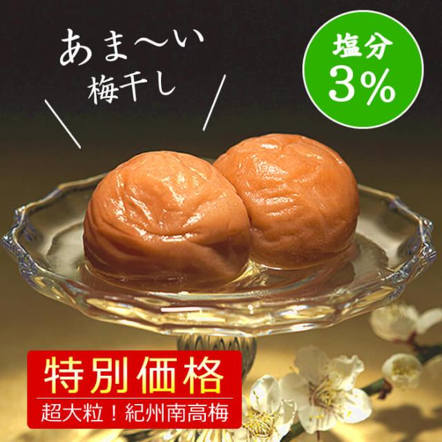 ネット限定 送料無料 減塩 はちみつ梅 超大粒 あまあま3% 500g 塩分3% 国産 紀州南高梅 特選梅干し A級 4Lサイズ
