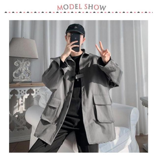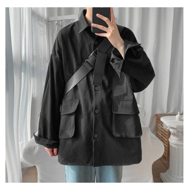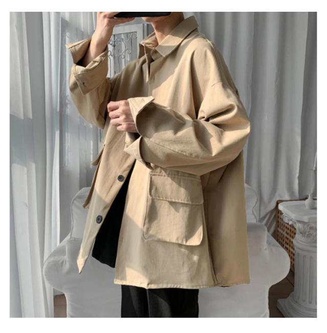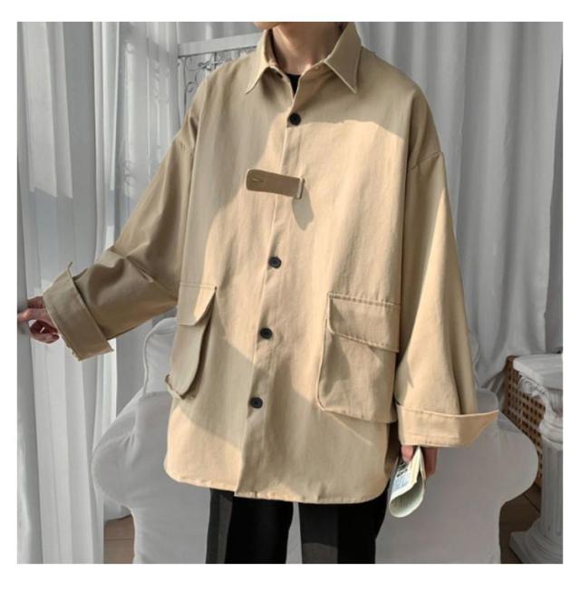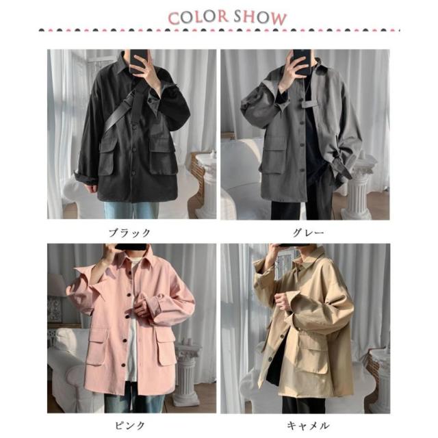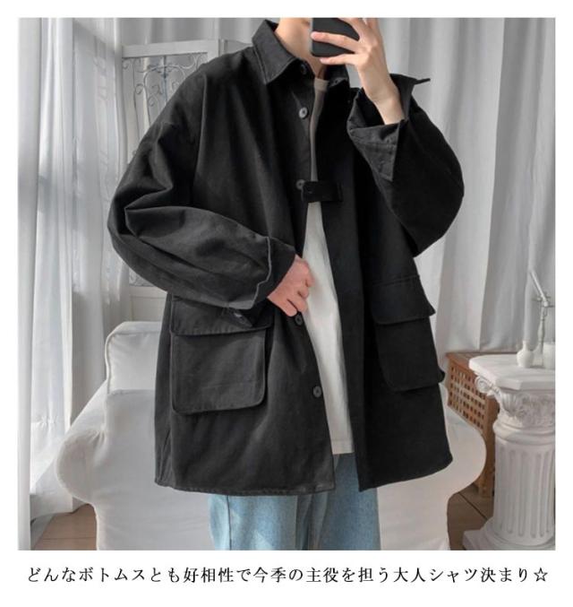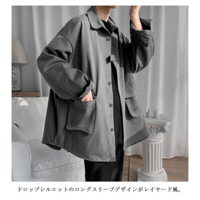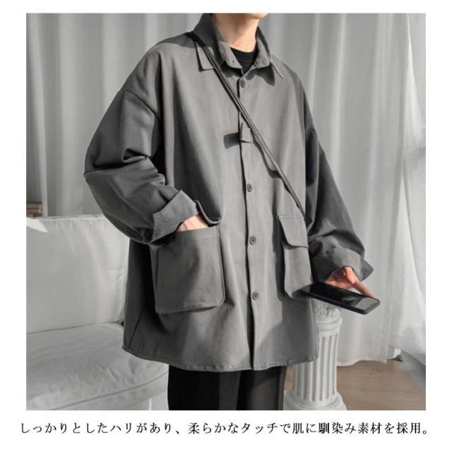 ロングシャツ カジュアルシャツ 春秋 大きめポケット 大きサイズ メンズ 大人気!シャツジャケット ジャケット アウター シャツ 通勤 羽織り 無地 長袖 折り襟 春服 秋服 薄手 ゆったり 前開き M-2XL