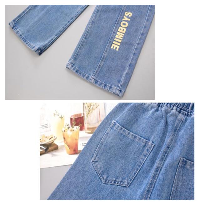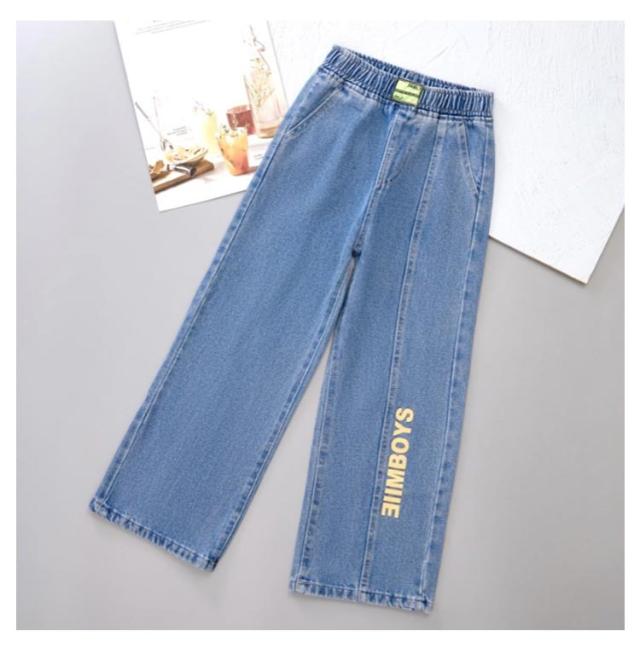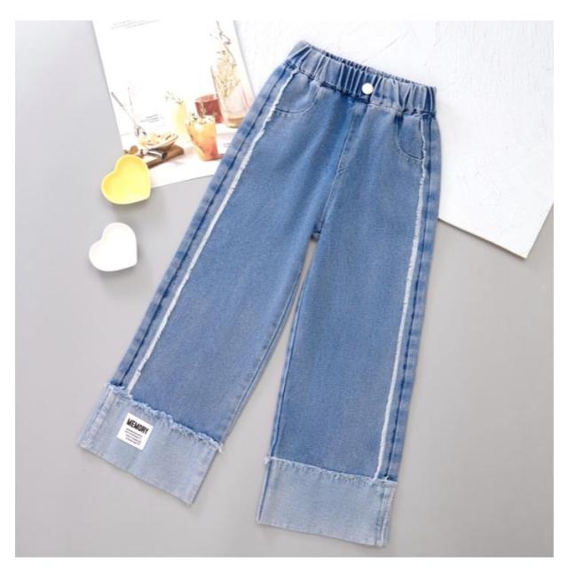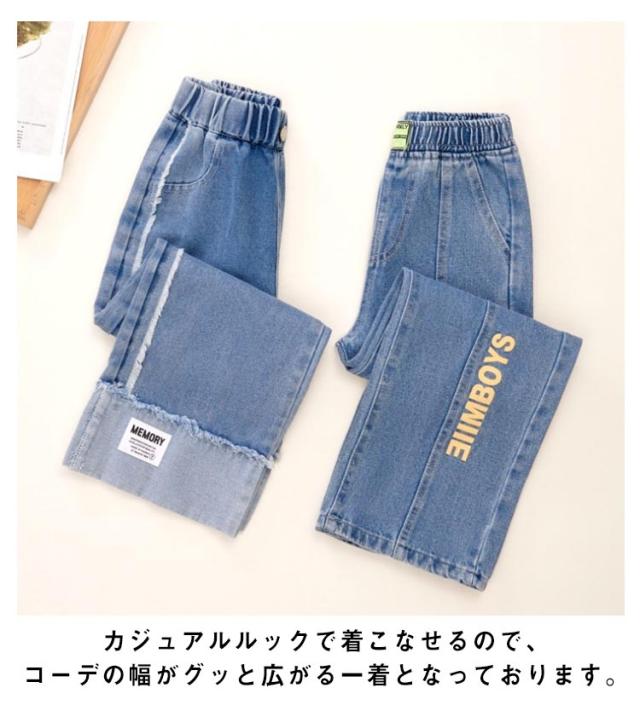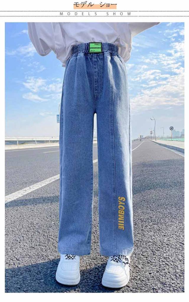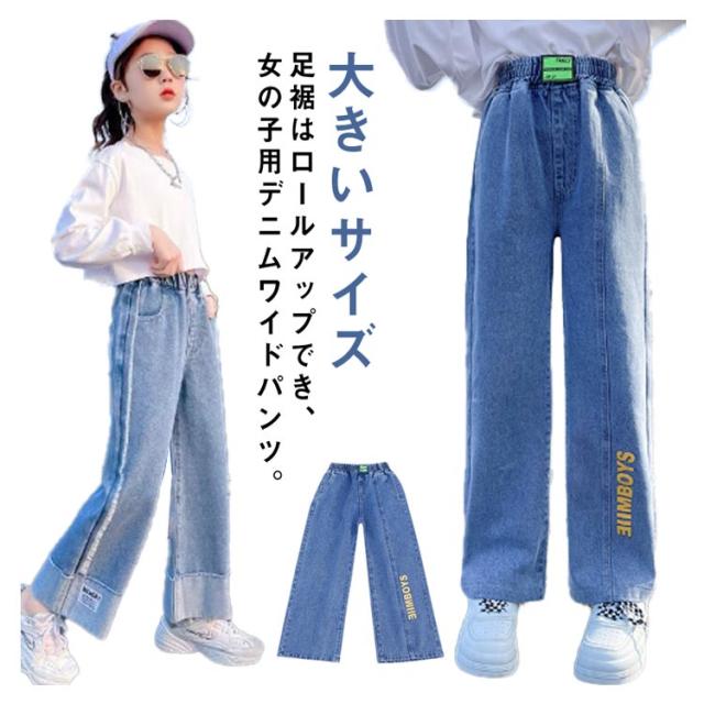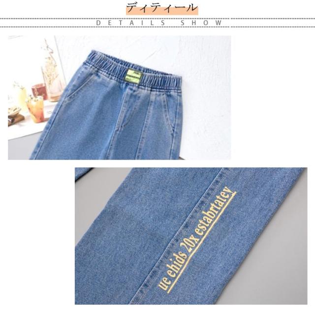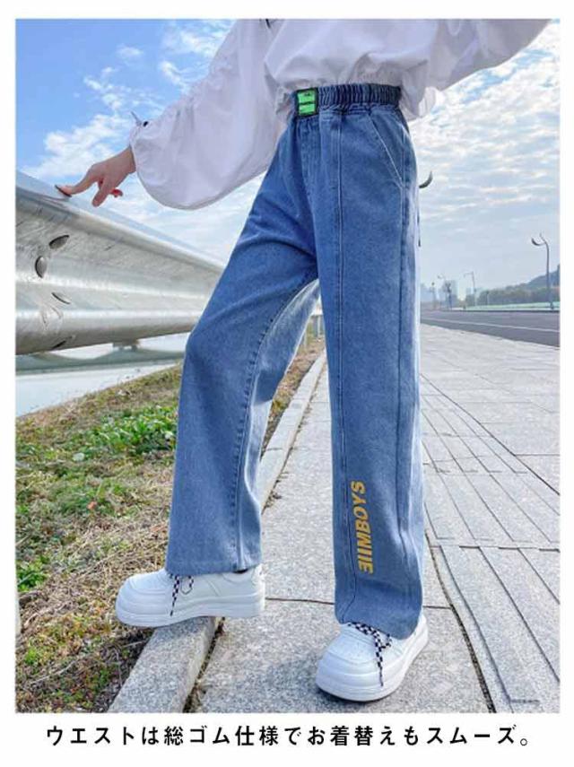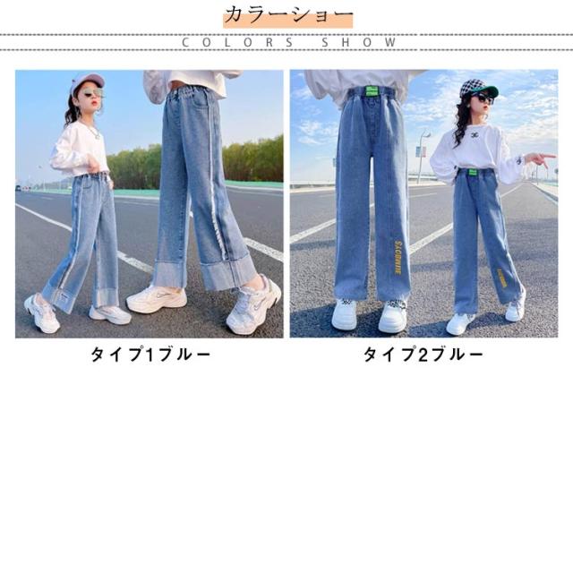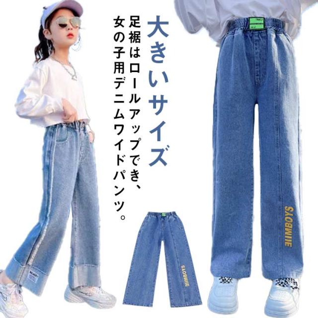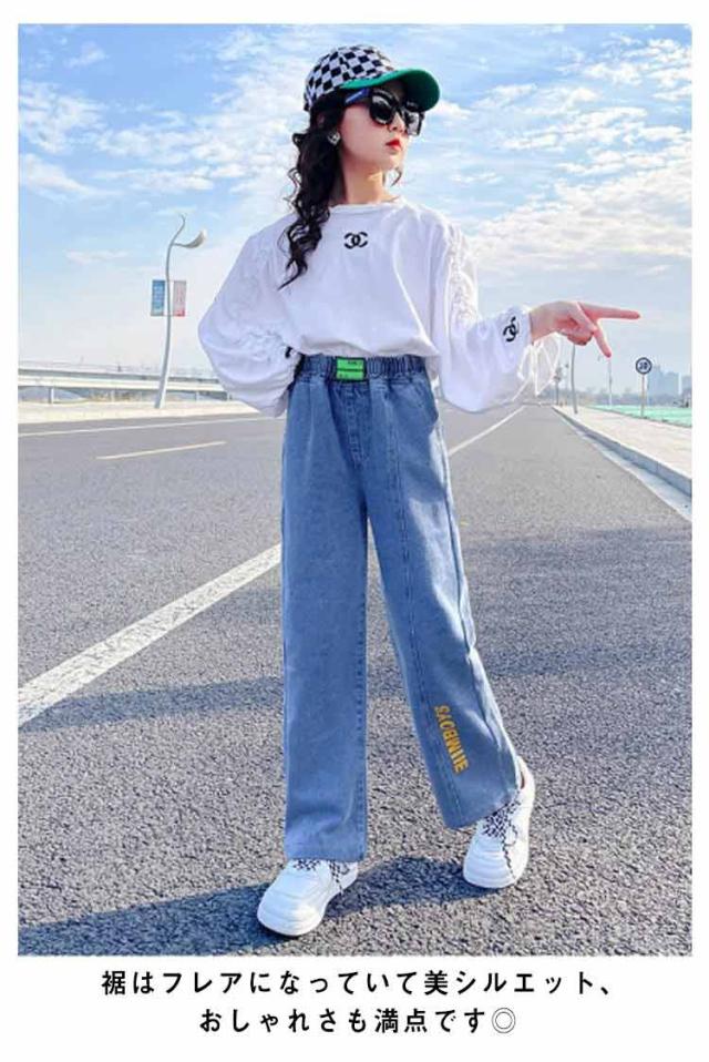 ガウチョパンツ 秋 春夏 綿混紡 送料無料 キッズ デニムパンツ パンツ ロングパンツ ボトムス 子供服 ジュニア 女の子 学生 英文字 おしゃれ デニム ワイドパンツ
