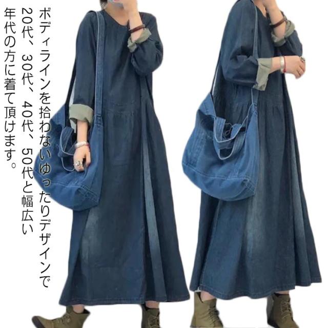 通勤 【送料無料】ワンピース カジュアル 着痩せ 40代 大きいサイズ オシャレ レディース 長袖 きれいめ シャツワンピース 春秋 aラインワンピース 膝下丈ワンピース 着痩せ 長袖 ワンピ 上品 20代 30代 デニムワンピース