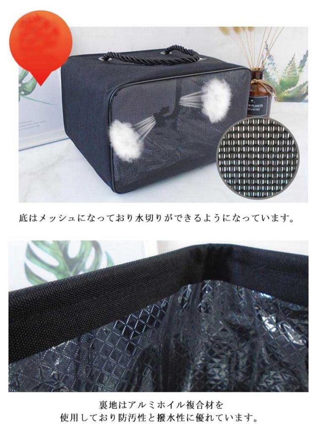| ジムや温泉、海、プールに必要な洗面用具をまとめて持ち運べるメッシュバッグ。 シャンプーなどのボトルを横置きすることなく縦ですっぽり入れることができます。 天面が開けているので背の高いボトルでもどんどん入れられる! 持ち手が太目のロープを採用しているため、細目のものと比べて手が痛くなりにくく持ちやすいです。 底はメッシュになっており水切りができるようになっています。 使用しないときはコンパクトに折り畳めて収納楽々です。 外側は防水生地を採用しているため、水が内部にしみ込んでいくことがありません。 裏地はアルミホイル複合材を使用しており防汚性と撥水性に優れています。 | |