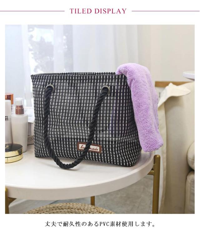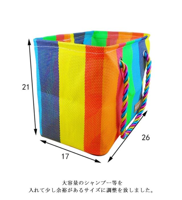 | 銭湯やスパにぴったりのメッシュバッグです。 丈夫で耐久性のあるPVC素材使用します。 また、掴みやすく丈夫な持ち手です。 大容量のシャンプー等を入れて少し余裕があるサイズに調整を致しました。 お風呂 銭湯 SPA 温泉 等にいつもの使っているシャンプー等をそのまま入れて持っていけるようになりました。 | |
