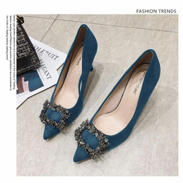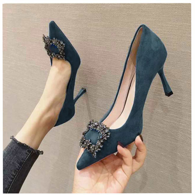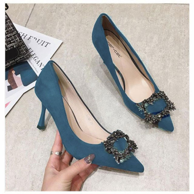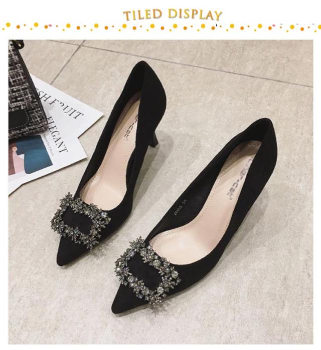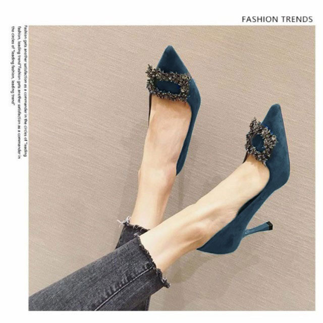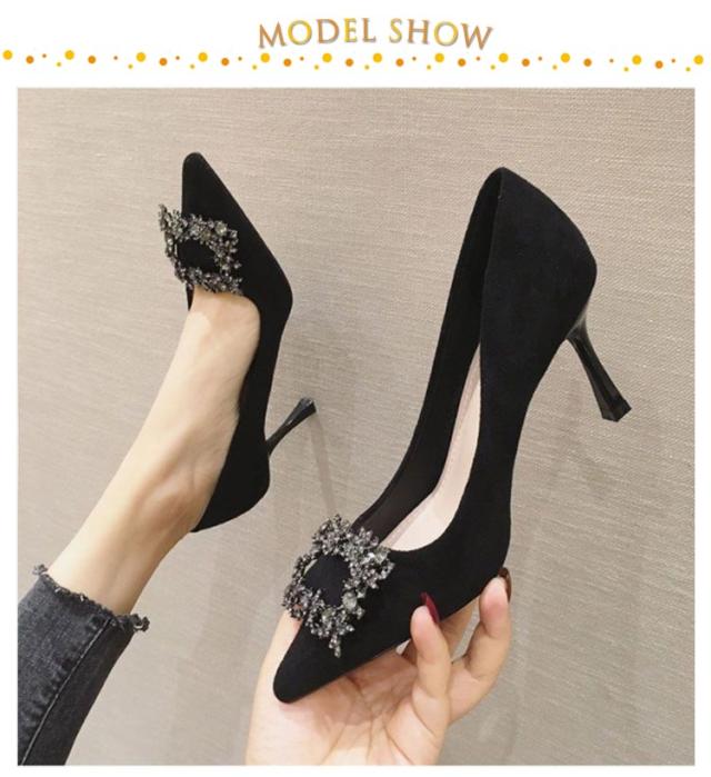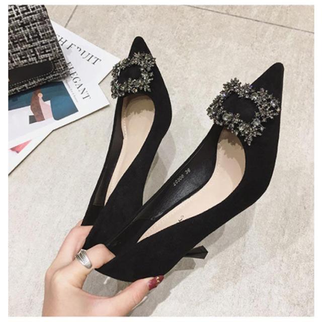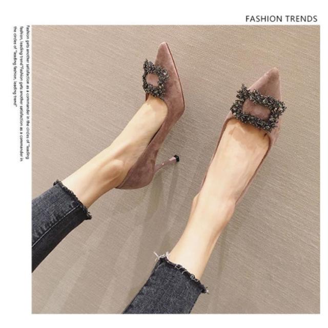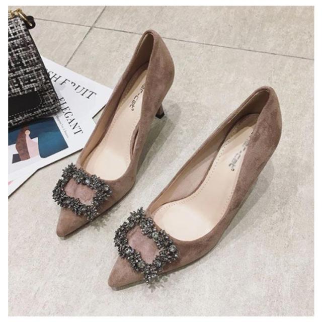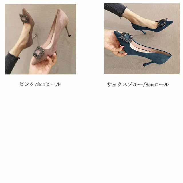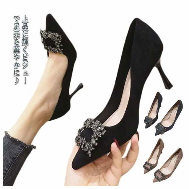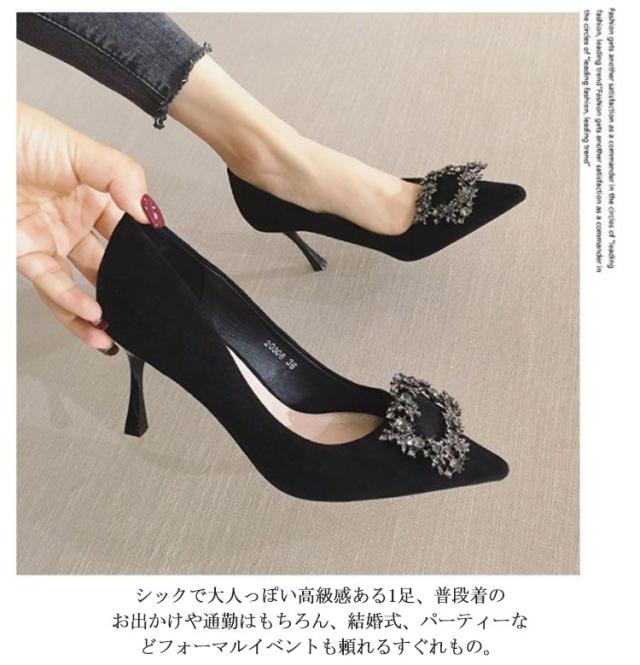 ビジュー パンプス ポインテッドトゥ スクエア バックル ハイヒール パンプス 靴 7.5cm 6cm レディース スエード シューズ 高反発 インソール 歩きやすい 痛くない 結婚式 フォーマル 卒業式 入学式 発表会 二次会 お呼ばれ