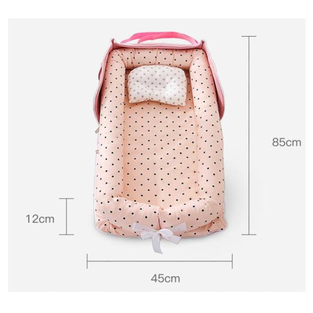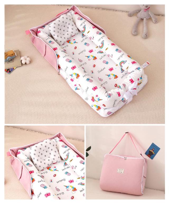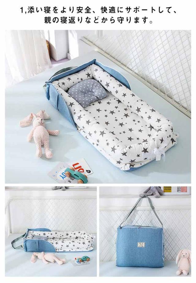| 持ち運び可能なベビーベッド!添い寝用のベッドインベッドとしてもOK 1,添い寝をより安全、快適にサポートして、親の寝返りなどから守ります。 2,家のどこでも寝かしつけてき、ママは家事をしながら赤ちゃんの状態がはっきりわかります。 3,旅行などお出かけの場合、アイテムが手軽に持ち運べて、赤ちゃんの寝どころの悩みを解決します。 | |