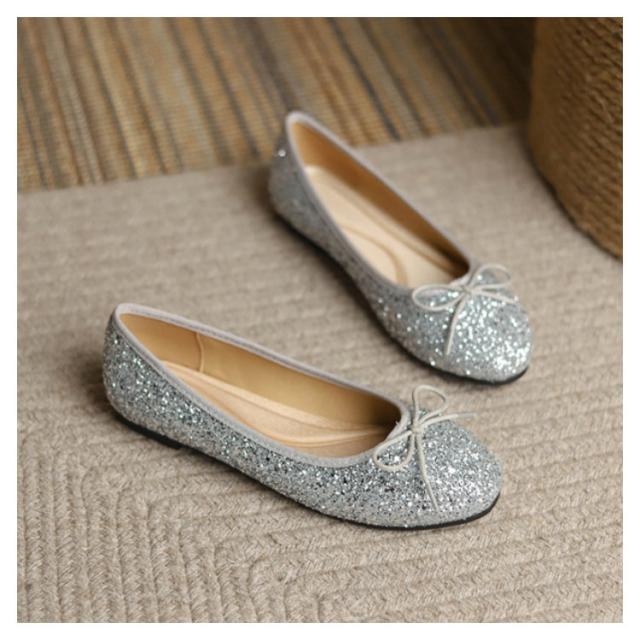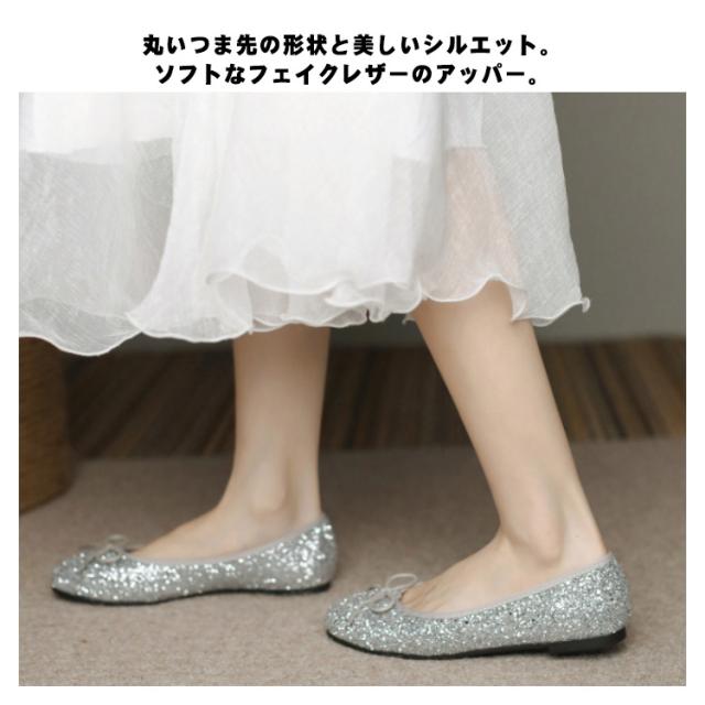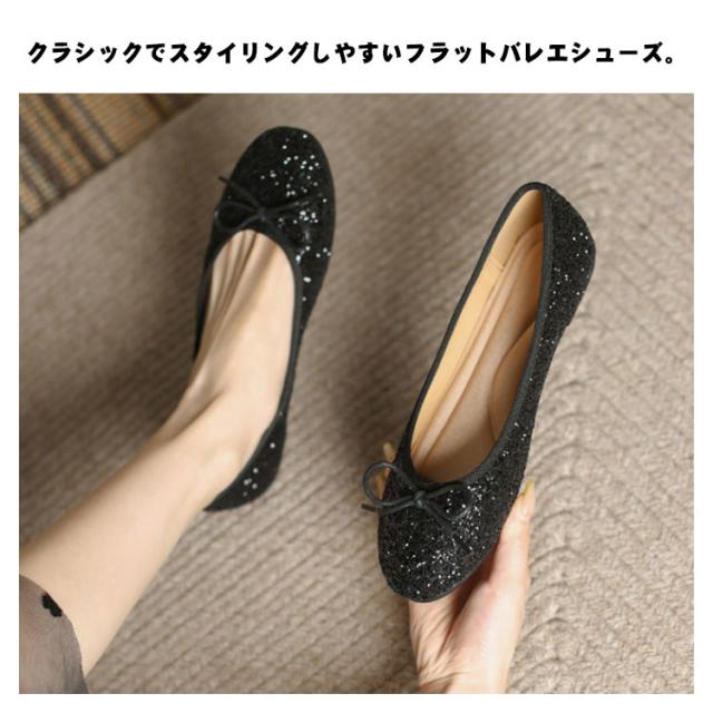 パーティー ローヒール スクエアトゥ 痛くない 柔らかい パンプス フラット ぺたんこ レディース グリッター フラットシューズ リボン キラキラ パンプス 歩きやすい パーティー バレエシューズ