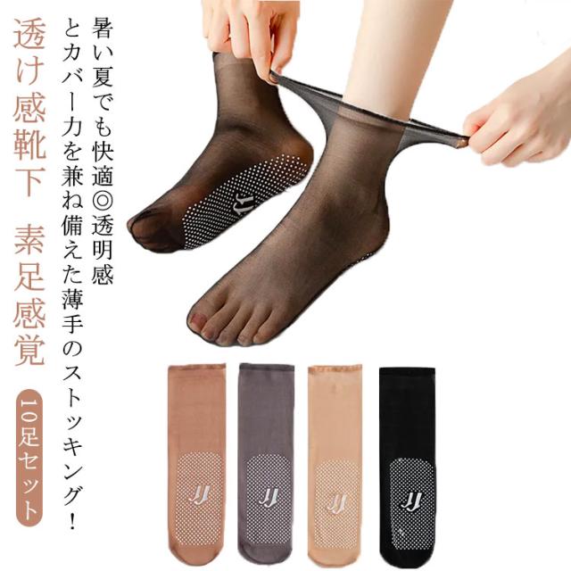 10足セット 滑り防止 シースルー 薄手 靴下 ストッキング パンプス 透け感靴下 素足感覚 くつした 【送料無料】シースルーソックス 脱げない 伸縮性 ストッキング おしゃれ ショートソックス