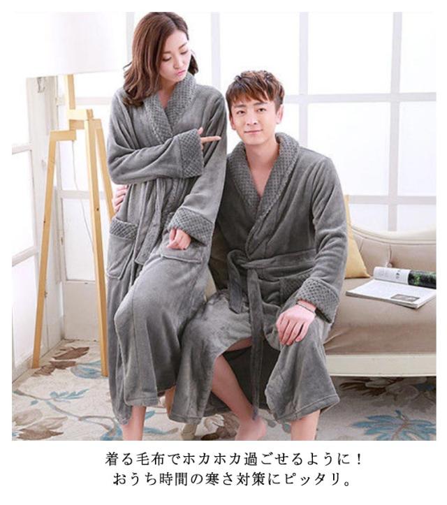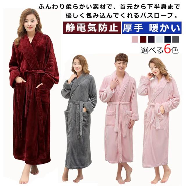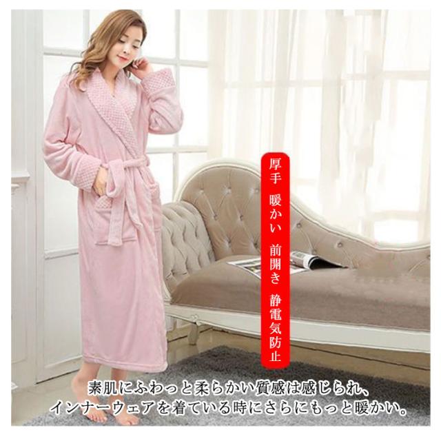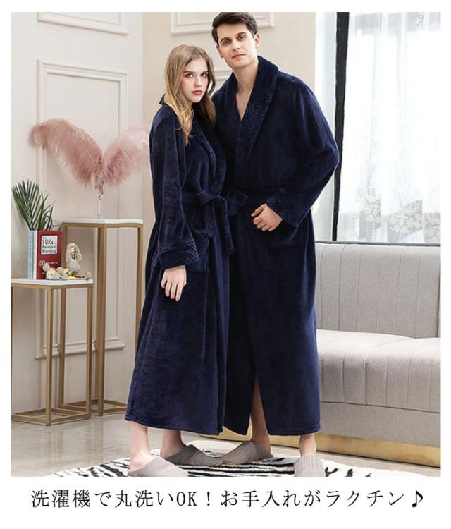 暖かい ロング丈 ルームウェア ペアガウン レディース 静電気防止 パジャマ マキシ丈 メンズ お風呂 前開き バスローブ ガウン ボディタオル 厚手 ふわふわ もこも ナイトガウンこ 部屋着 寝巻き フランネル
