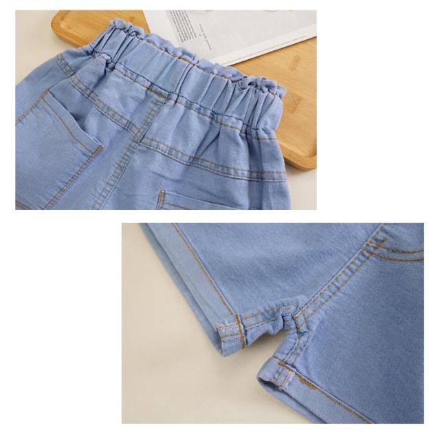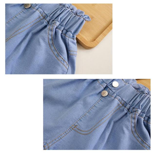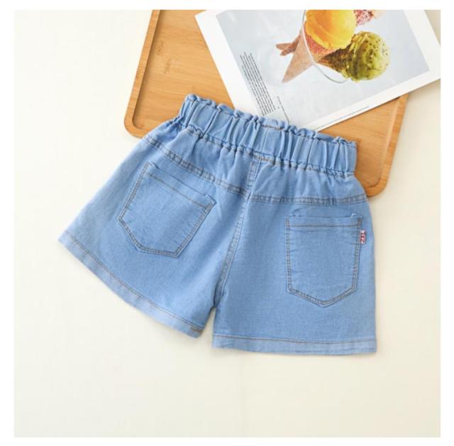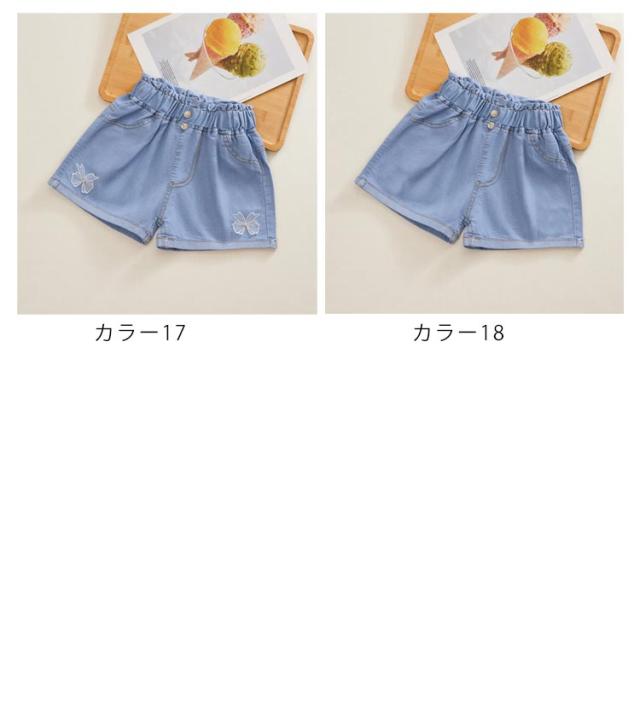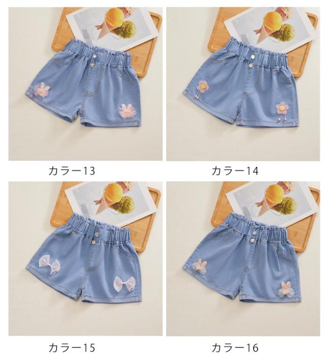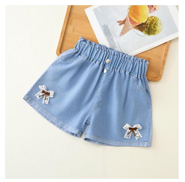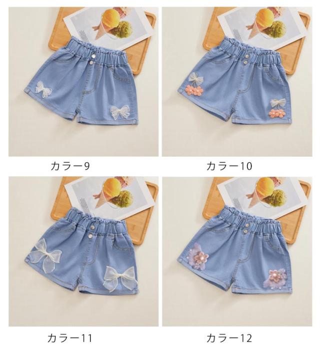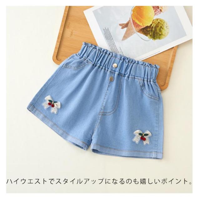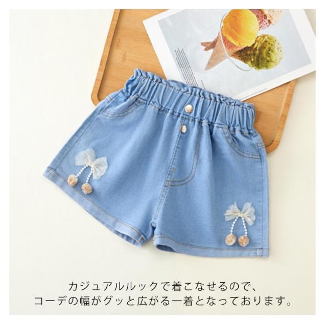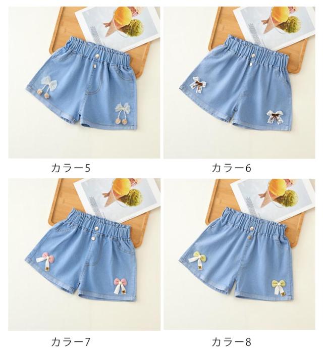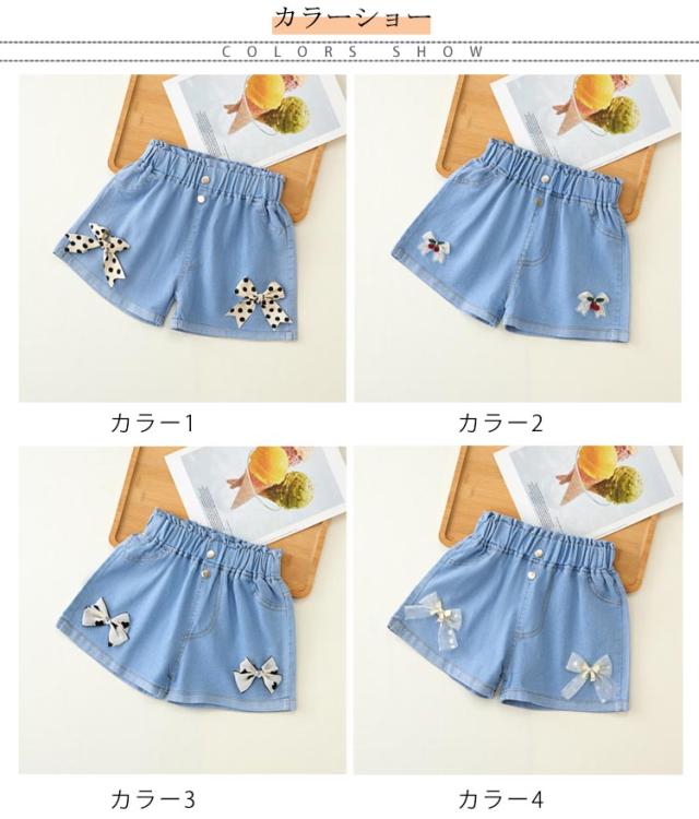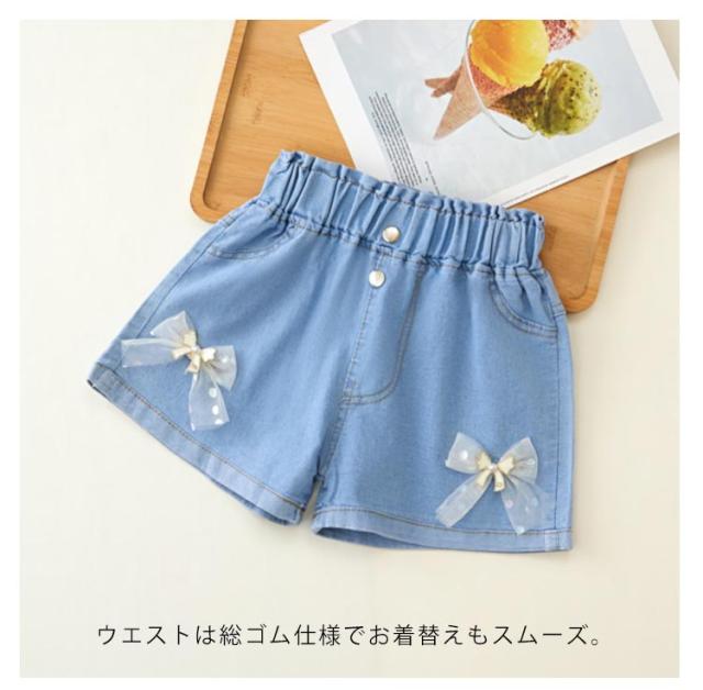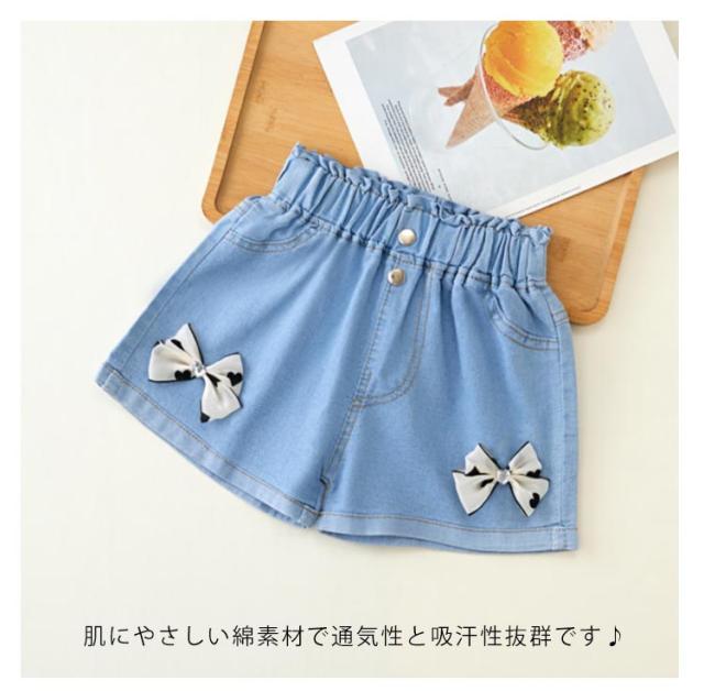 デニムパンツ ショートパンツ 無地 デニム 夏 ハーフパンツ リボン付き カジュアル キッズ かわいい ショート丈 ウエストゴム ワイドパンツ 女の子 ジュニア ガールズ ハーフパンツ シンプル 送料無料