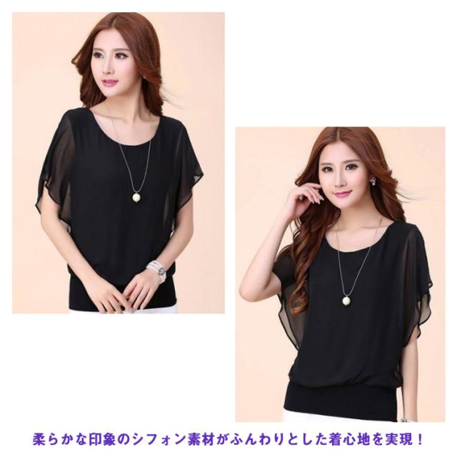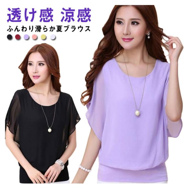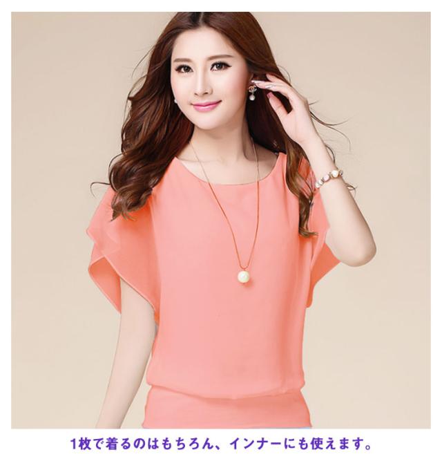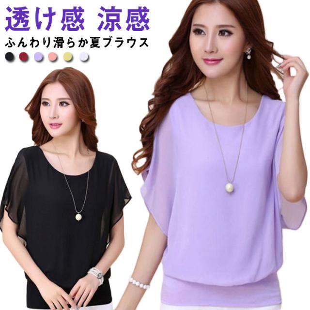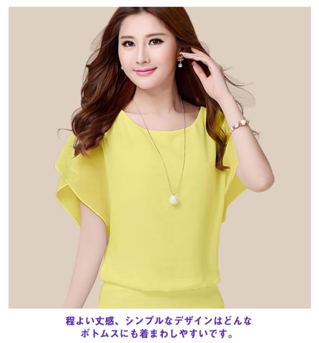 ブラウス レディース シフォンブラウス 透け感 袖フリル オフィス シフォン おしゃれ 上品 オフィス カジュアル きれいめ 春夏 半袖 無地 ゆったり シンプル ひんやり 涼しい 涼感 冷感 カットソー Tシャツ フレアスリーブ 体型カバー インナー 大人可愛い 送料無料