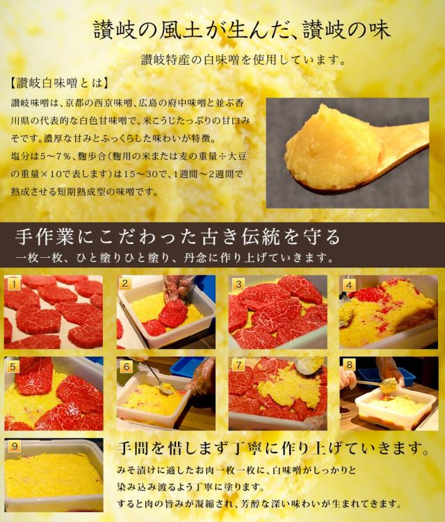 黄金色に輝く讃岐特産の白味噌に包まれた国産黒毛和牛種オリーブ牛みそ漬け。