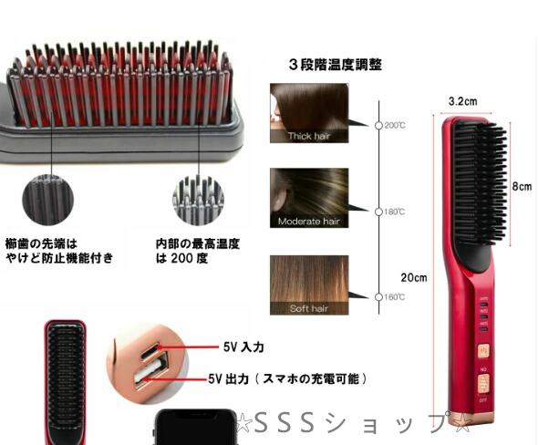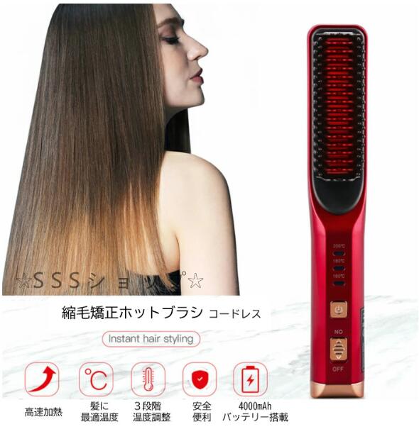 アイロンブラシ ブラシアイロン ホットブラシ コードレス ヒートブラシ ヘアケア ヘアブラシ 充電式コードレホットブラシ