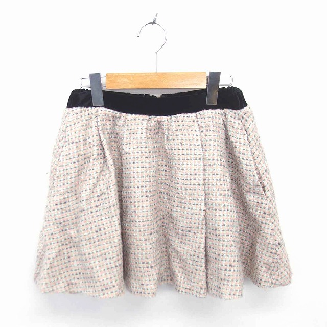 【中古】ダズリン dazzlin フレア スカート ニット ミニ 総柄 バックジップ M ベージュ ピンク 薄茶 /TT4