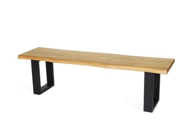 耳付きのワイルドな座面に、インダストリアルデザインの脚部を組み合わせたスタイリッシュなベンチです。天板は厚突き突板仕上げ。通常は1mm程度の厚みでしかない突板を3mmと極厚にしました。これにより抜群の耐久性を誇り、無垢材と変わらない風合いをリーズナブルに実現しています。オーク材の豊かな表情の木目にアクセントとなるパテのラインが特長で、異種素材を使用した製品。同シリーズのテーブルとの組み合わせも◎その他、テーブルとしても、腰掛け、二段にすればディスプレイ台などマルチにお使い頂けます。