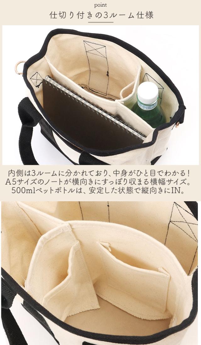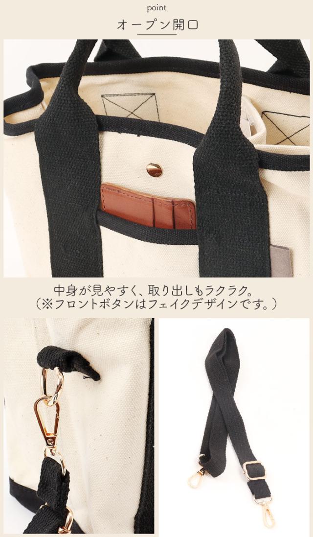 | 商品説明 | ・ALTROSE(アルトローズ)から、整理整頓しやすい2WAYミニトートが新登場。 【ALTROSEとは】 ・いつまでも”カワイイ”を目指す女性のためのブランド。「今なりたい私」のコーディネートアクセントになるバッグと小物を提案! 【ちょうどいいサイズ感】 ・大きすぎず小さすぎない!マチ広設計で、お出かけに必要な小物がしっかり収まるミニトート。 【仕切り付きの3ルーム仕様】 ・内側は3ルームに分かれており、中身がひと目でわかる!誰でも収納上手に♪ 【持ち方を選べる2WAYタイプ】 ・ハンドバッグとしてはもちろん、長さ調節可能なショルダーベルトを取り付けて、肩掛けや斜め掛けもOK。 【オープン開口】 ・中身が見やすく、取り出しもラクラク。(※フロントボタンはフェイクデザインです。) 【A5サイズもペットボトルも!】 ・A5サイズのノートが横向きにすっぽり収まる横幅サイズ。500mlペットボトルは、安定した状態で縦向きにIN。 【サッと取り出せるポケット】 ・内側・外側にオープンポケットを装備!スマホなどの小物がバッグに中で迷子にならず安心◎ 【大人カジュアルにキマる】 ・柔らかなキャンバス生地に、ゴールド金具をプラス。 【ポケット仕様】 ・内側:オープンポケット×2 ・外側:オープンポケット×1 |