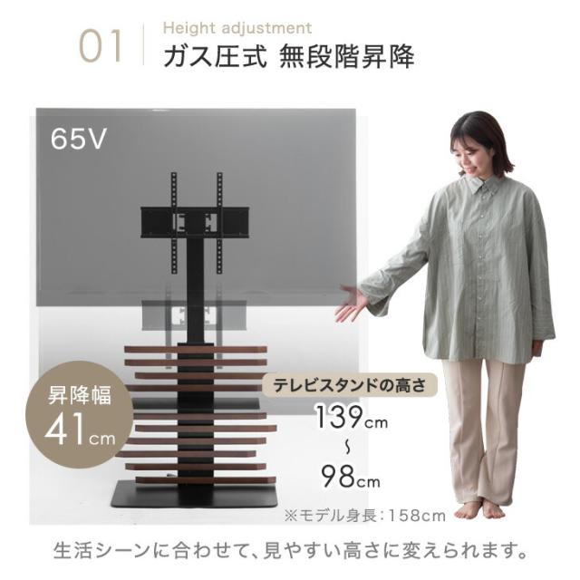 自分style”にアレンジ ガス昇降 テレビスタンド 上下左右 首振り 32〜65 インチ 天然木 テレビ台 TV台 TVスタンド 天然木 ガス圧式 ガス圧 リビング コーナー