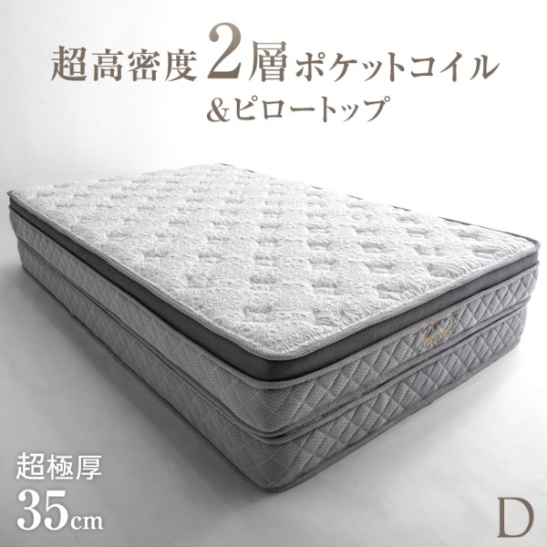 マットレス ダブル 超極厚35cm Wポケットコイル ピロートップ 抗菌 防ダニ 防臭 3Dメッシュ 体圧分散 ポケットコイル ダブルマットレス マットレス ポケットコイルマットレス コイルマットレス ベッドマットレス