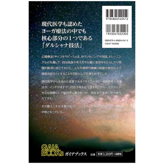 心理療法(サイコセラピー)とは、カウンセリングや対話、トレーニングなどを通して、自分自身の考え方や行動に変容をもたらしたり問題の解決に役立てたりと、人々の精神的健康の回復や保持および増進を図ろうとすることを目的として効果をあげている。現代医学から生まれた言葉である「サイコセラピー」を体現する技法が、インドではすでに約五千年も前に生まれており、古代からの大切な智慧として聖典等に書き記され、現在まで連綿と受け継がれてきた。その教えこそが本書で紹介しているヨーガ療法・ダルシャナ技法の核となっている。