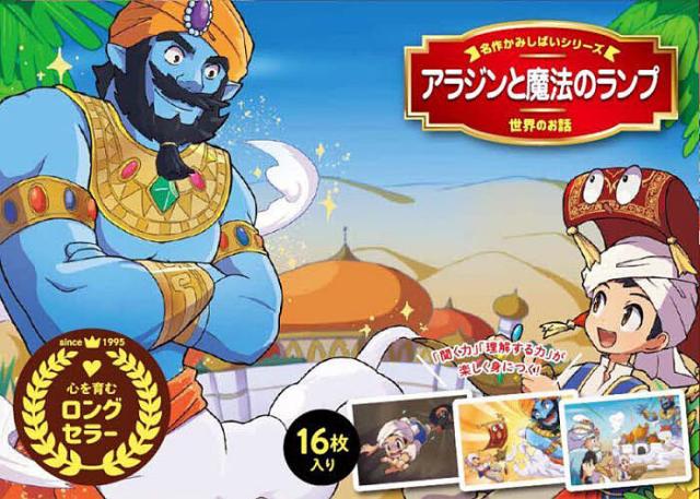 永岡書店のロングセラー「名作かみしばい」シリーズに新しいラインナップとして子どもたちに大人気のお話「アラジンと魔法のランプ」が加わりました。近年子どもの国語力を伸ばすと見直されている紙芝居。「聞く力」「理解する力」が楽しく身につきます。裏書には「読み方のポイント」と、今作からめくるタイミングも入れました。また物語部分は全ての漢字にルビをふっていますので、お子様が読み手にも挑戦でき、音読の学習にもなります。臨場感あふれる大きなイラストで、子どもたちとお話の世界をお楽しみ下さい。