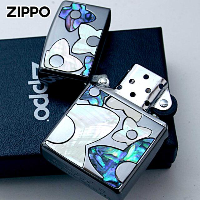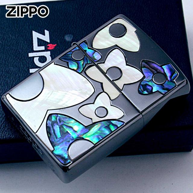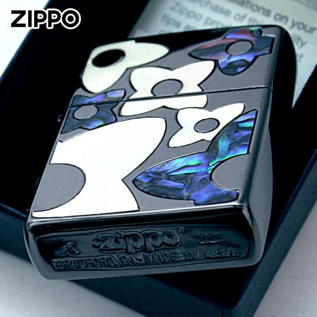 Zippo ジッポライター シェル 貝 インレイ 象嵌 フラワー 花 ブラック Shell Flower BK 1201S836 メール便専用商品