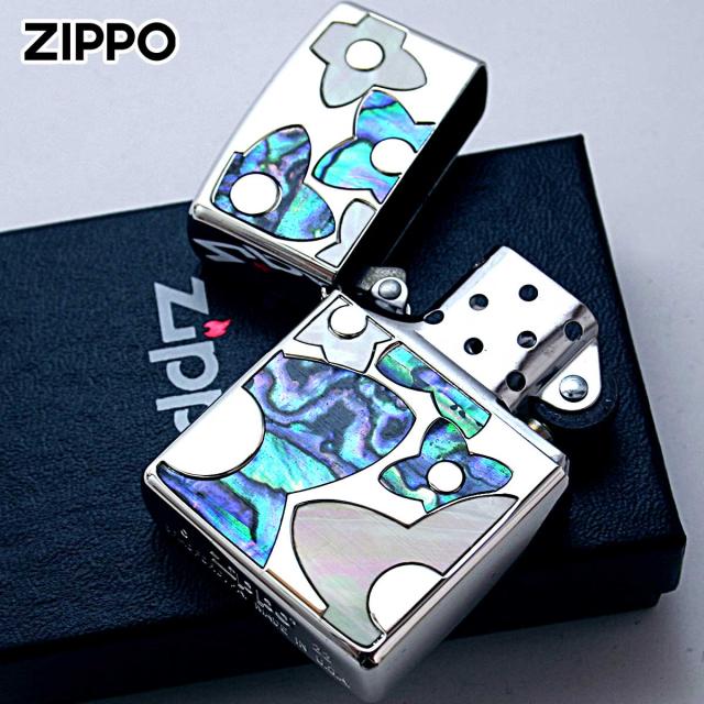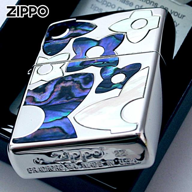 Zippo ジッポライター シェル 貝 インレイ 象嵌 フラワー 花 シルバー Shell Flower SV 1201S835 メール便専用商品