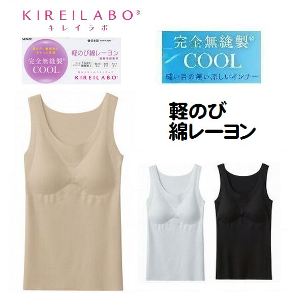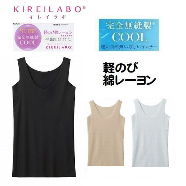 軽のび綿レーヨン ラン型 タンク 汗取り付き 綿混 ひんやり インナー タンクトップ クール 接触冷感 春夏素材 無縫製 グンゼ キレイラボ KL7653
