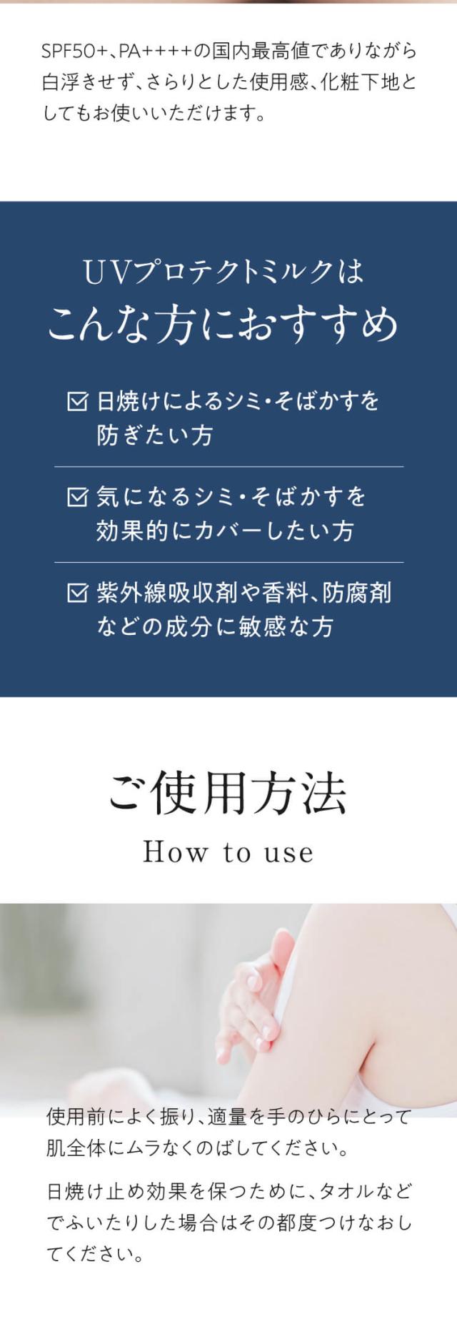 | 商品名 | UVプロテクトミルク SPF50+ PA++++ |