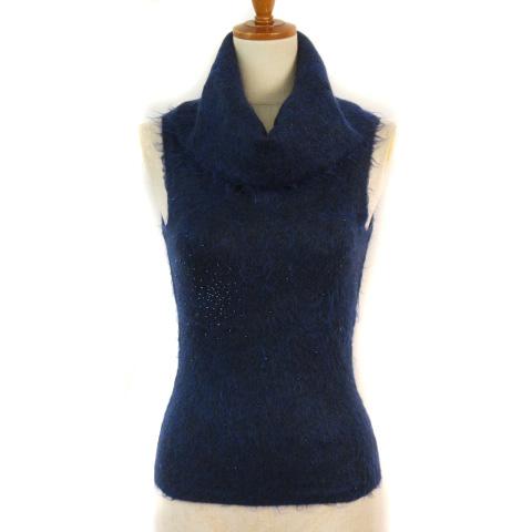 【中古】アイシービー iCB カットソー ニット オフタートル ビーズ S 青 ブルー レディース