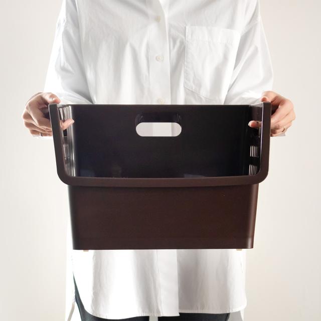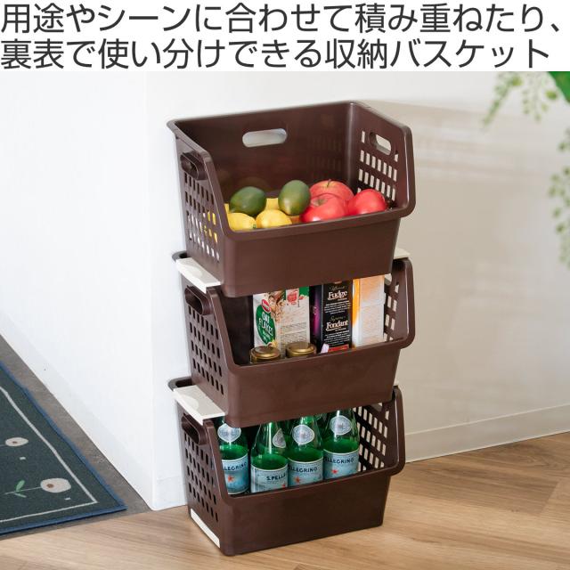 用途に合わせて積み重ね、表裏で使い分けできる収納バスケット
