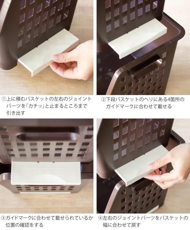 (1)上に積むバスケットの左右のジョイントパーツを「カチッ」と止まるところまで引き出す