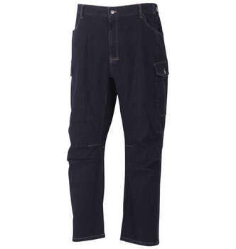 前開きファスナー/ストレッチ/股下マチ付/サイド・バック・フラップ付きカーゴポケット有/ウエストサイドゴム仕様/T/Cストレッチデニム/加工(バイオ)/ベルトループ8本