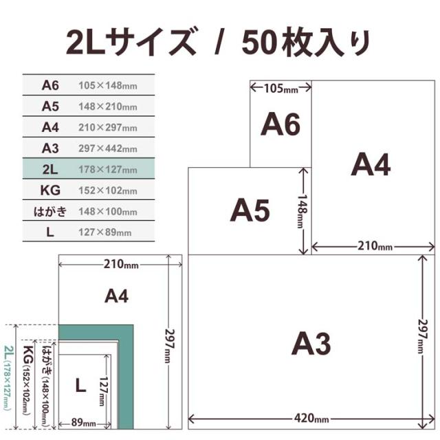| ・用紙サイズ:127mm*178mm(2L判サイズ) ・用紙枚数:50枚 ・用紙タイプ:写真用紙 ・カラー:ホワイト ・白色度:93% ・紙厚:0.25mm ・坪量:251g/平方メートル ・お探しNo.:D315 |