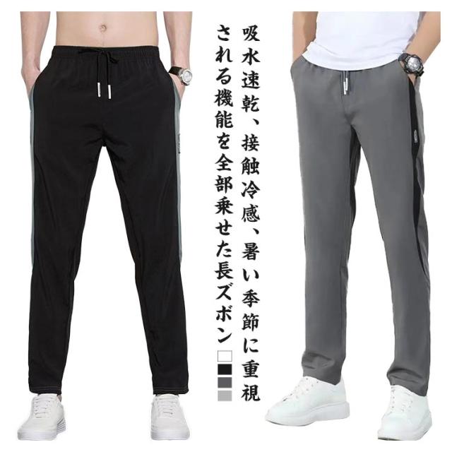 ゴルフパンツ メンズ 接触冷感 ストレッチパンツ スポーツパンツ スポーツウェア ロングパンツ 大きめ 速乾 ゴルフウエア 冷感パンツ uvカット ひんやり 無地 スリム 伸縮 ストレッチ 長ズボン シンプル おしゃれ トレーニングパンツ アウトドア 日焼け防止 夏 秋 送料無料