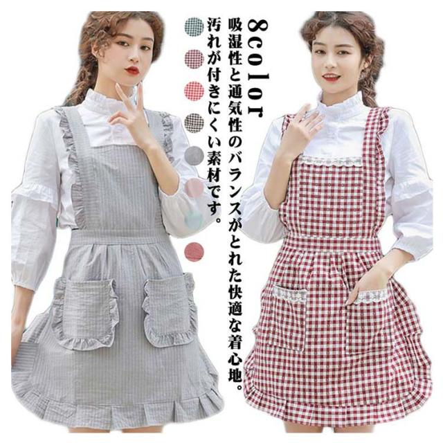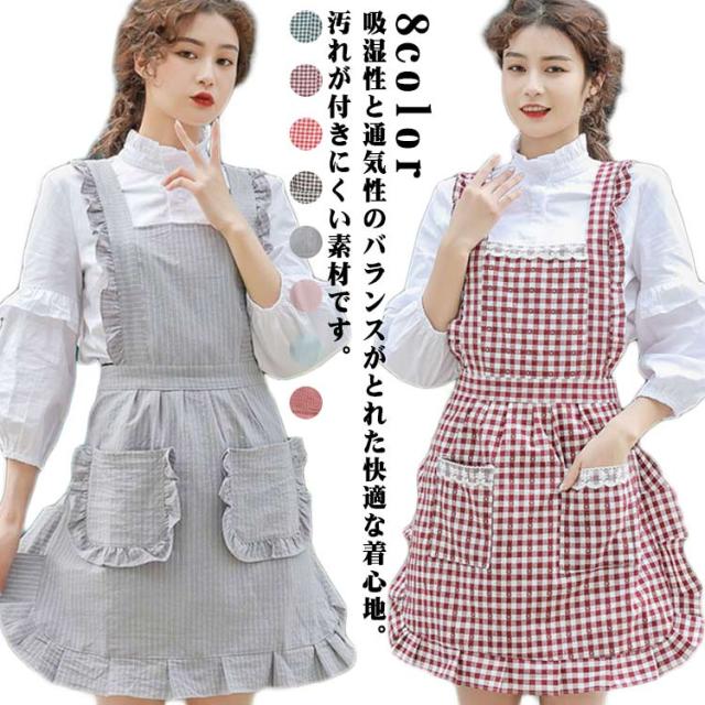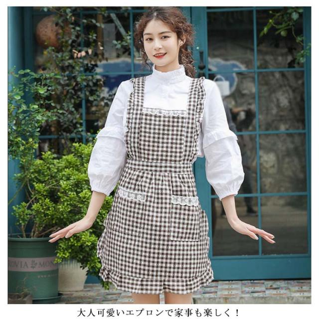 エプロン リボン レース フリル 付き フリーサイズ 保育士 ワンピース かわいい 誕生日 プレゼント アイドル メイド 彼女 オシャレ 可愛い エプロンドレス バースデー バースデープレゼント 送料無料 エプロン チェック柄