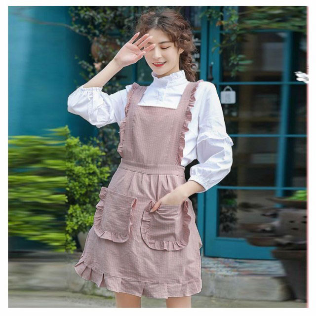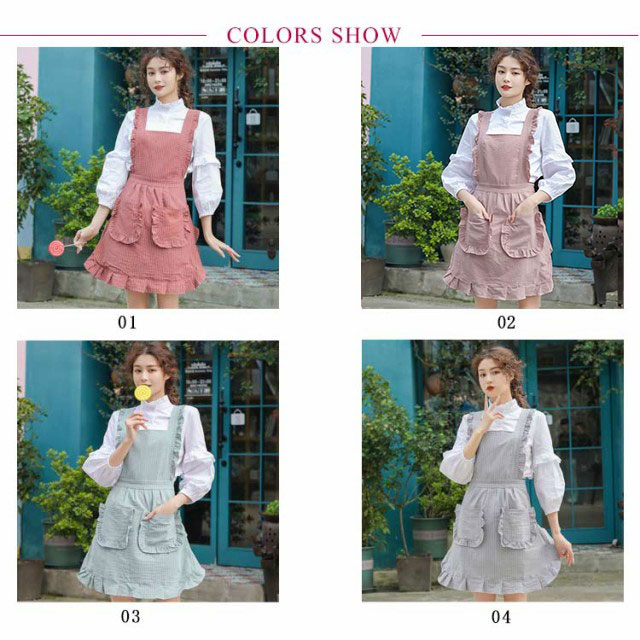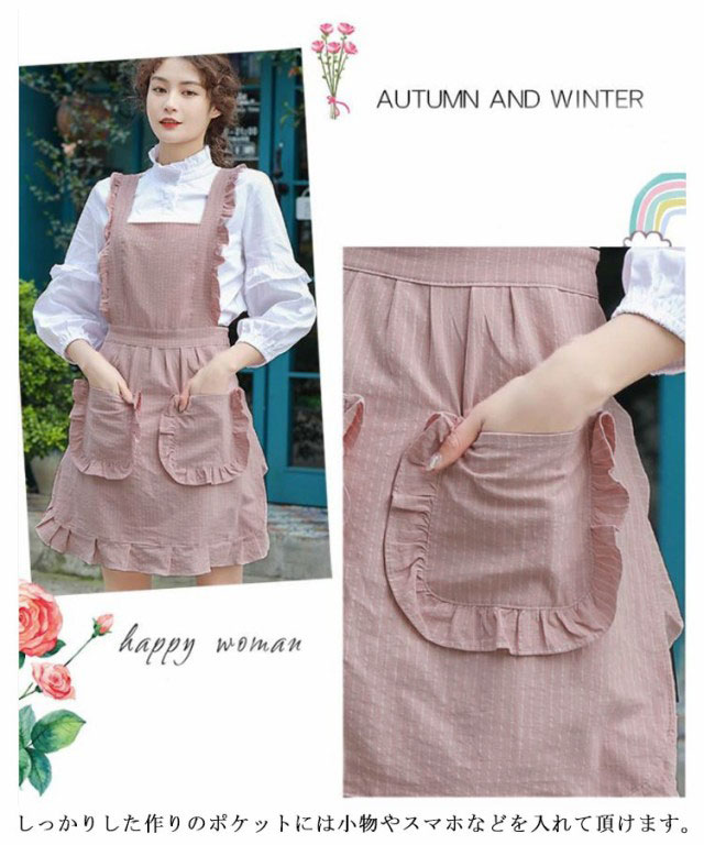 | 吸湿性と通気性のバランスがとれた快適な着心地。汚れが付きにくい素材です。 大人可愛いエプロンで家事も楽しく! 綿は肌触りが良く、お洗濯にも強い素材です。 しっかりした作りのポケットには小物やスマホなどを入れて頂けます。 汚れの付きにくい加工をしているので、毎日の家事やお手伝いに使いやすいエプロンです。 | |