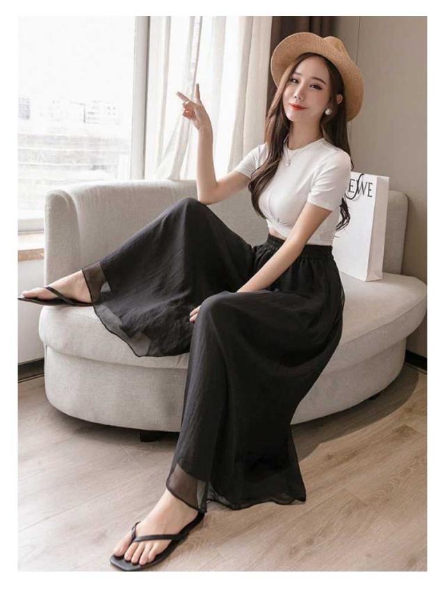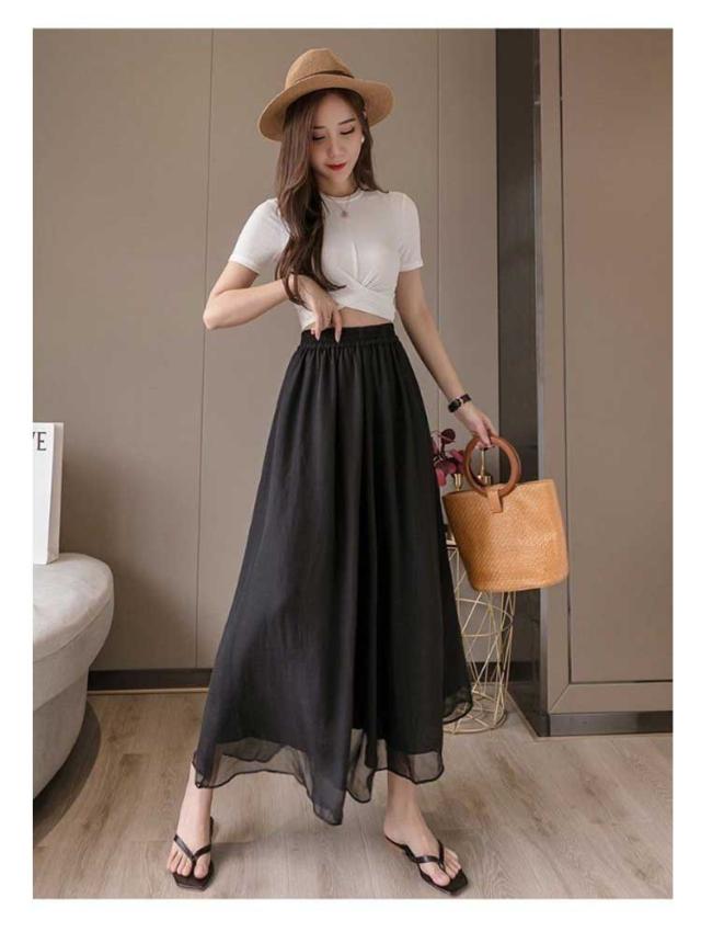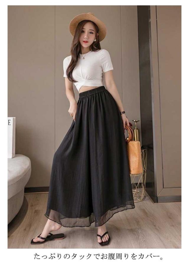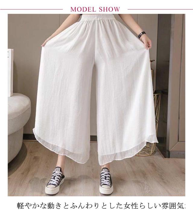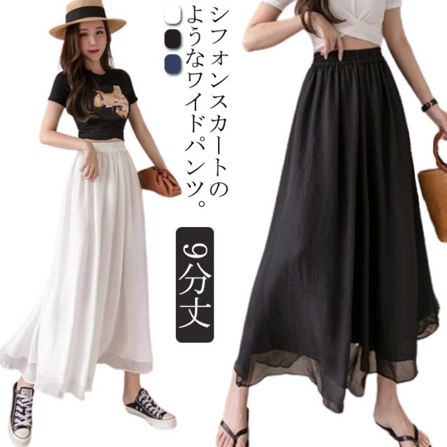ワイドパンツ レディース スカンツ シフォン スカンツ スカーチョ ロングパンツ ワイド パンツ 裏地付き 春 春夏 夏 透け 体型カバー 大きいサイズ 着痩せ 20代 40代 30代