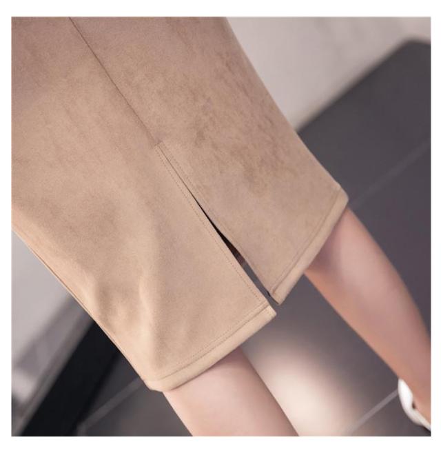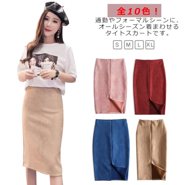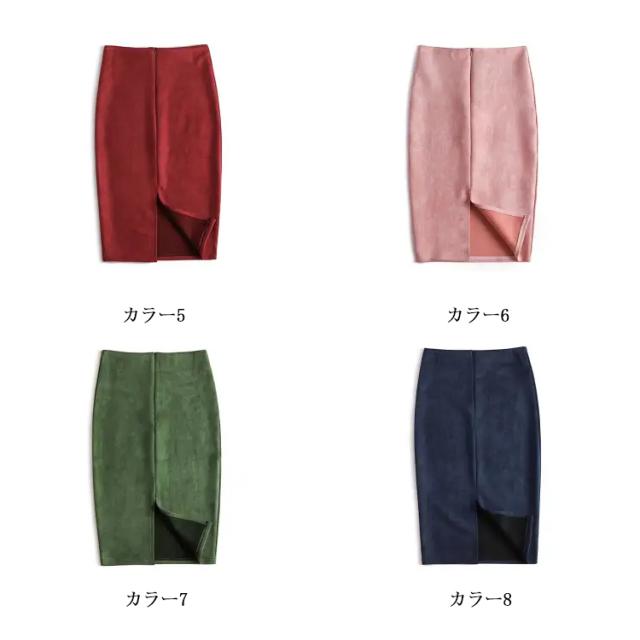 スウェード タッチ スカート タイトスカート レザースカート バックスリット フェイクレザー エコレザー ハイウエスト ロングスカート ひざ丈 膝丈 スカート オフィス OL カジュアル 着?せ 20代 30代 40代 S M L XL