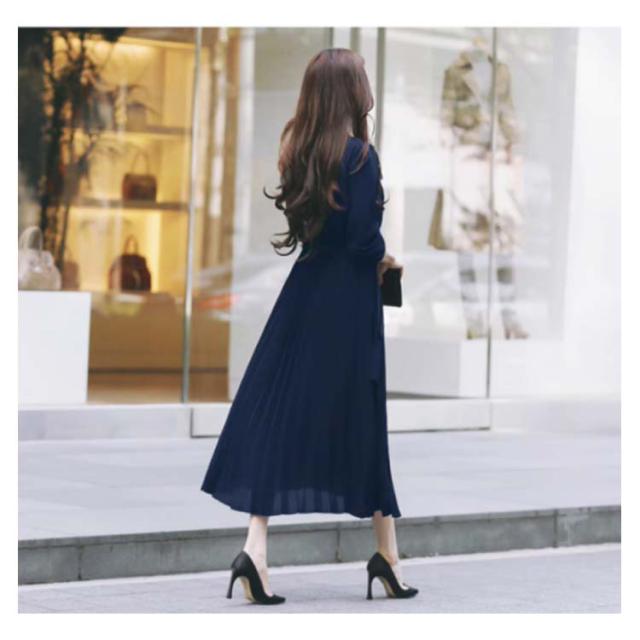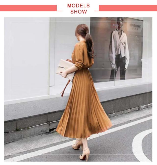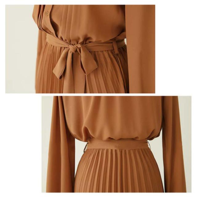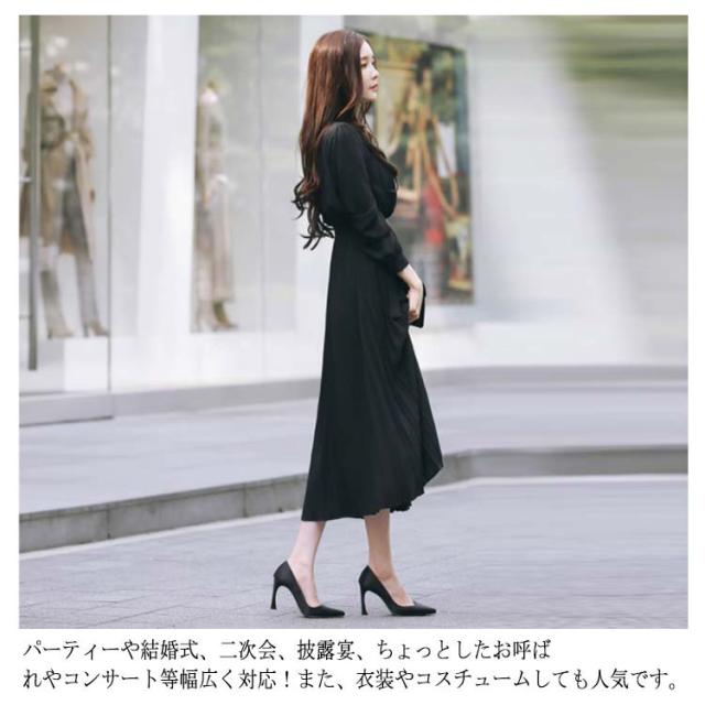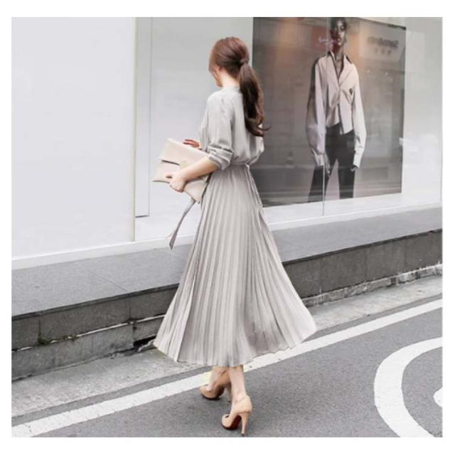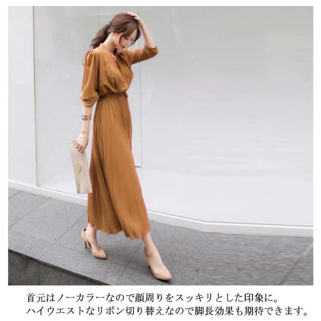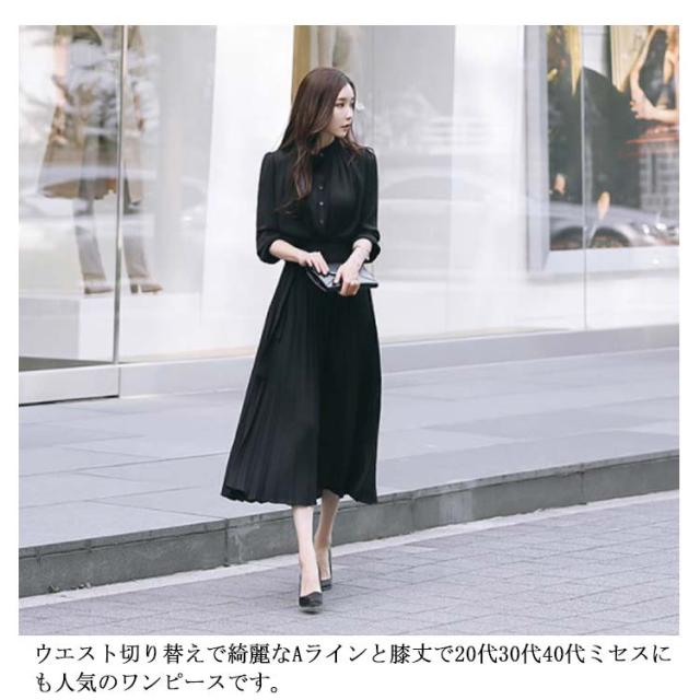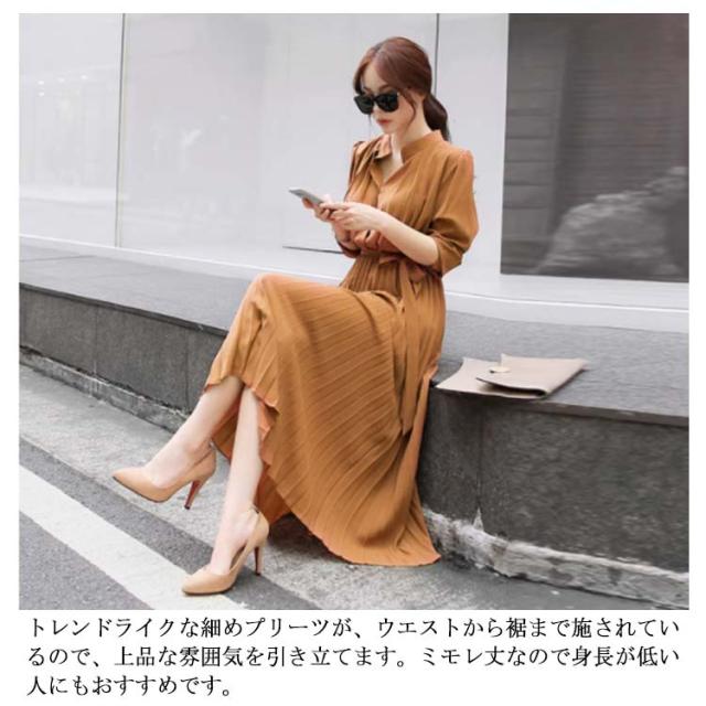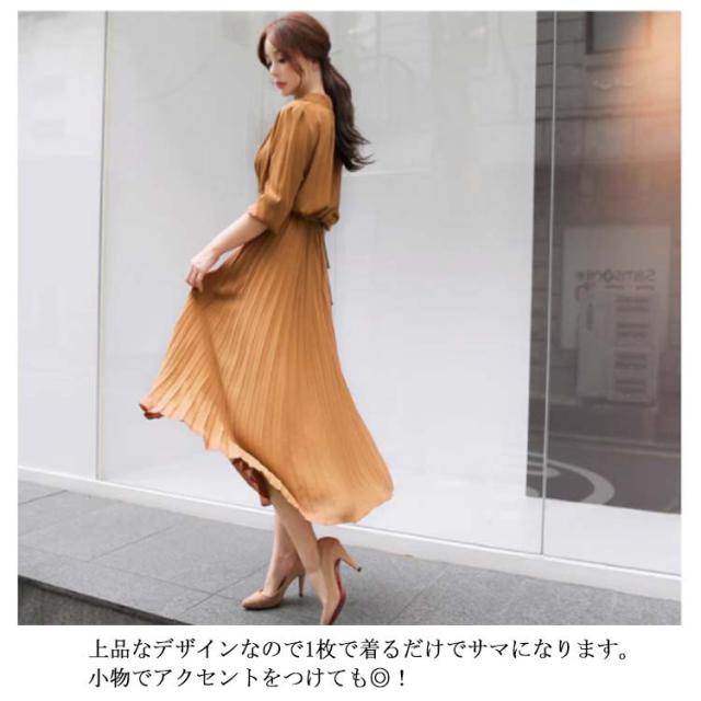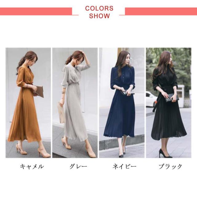 送料無料 ロングワンピース レディース シフォン ワンピース きれいめ パーティードレス ウエストリボン 長袖 シャツワンピース ミモレ丈 マキシワンピ 大人 上品 フォーマル プリーツ ふんわり 可愛い Aライン オフィス カジュアル 結婚式