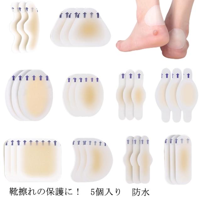 靴擦れ防止 テープ 5個入り 靴ずれ防止 ケアシート ジェル 保護シール 透明 クリア 防水 マメ タコ 魚の目 足指 衝撃吸収 かかと つま先 保護パッド レディース メンズ 靴ずれ防止グッズ 靴擦れ 予防 靴ズレ 貼るだけ 痛み 軽減 保護 フットケア サポーター 送料無料